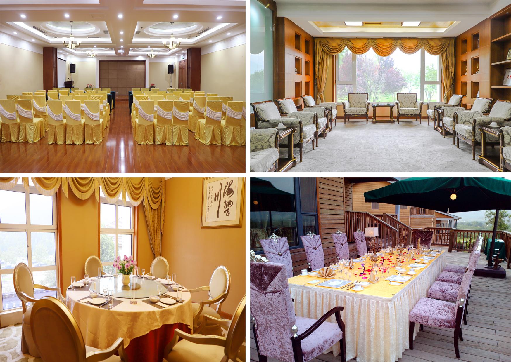球場會(huì)所內(nèi)設(shè)宴會(huì)廳、自助餐廳、精品包間等,宴會(huì)廳可同時(shí)容納200人就餐,精品包間容客70位,多功能廳容客110余人,滿足年會(huì)、各類中小型會(huì)議及婚宴、滿月宴、生日宴、頒獎(jiǎng)禮等多種宴席需求,并提供品種豐富的定制純手工熟食禮盒。多功能會(huì)議廳設(shè)備齊全、環(huán)境優(yōu)良;餐廳環(huán)境優(yōu)美、毗鄰球場,設(shè)置觀景臺(tái)俯瞰湖光山色,是會(huì)議、宴請、度假的不二之選。