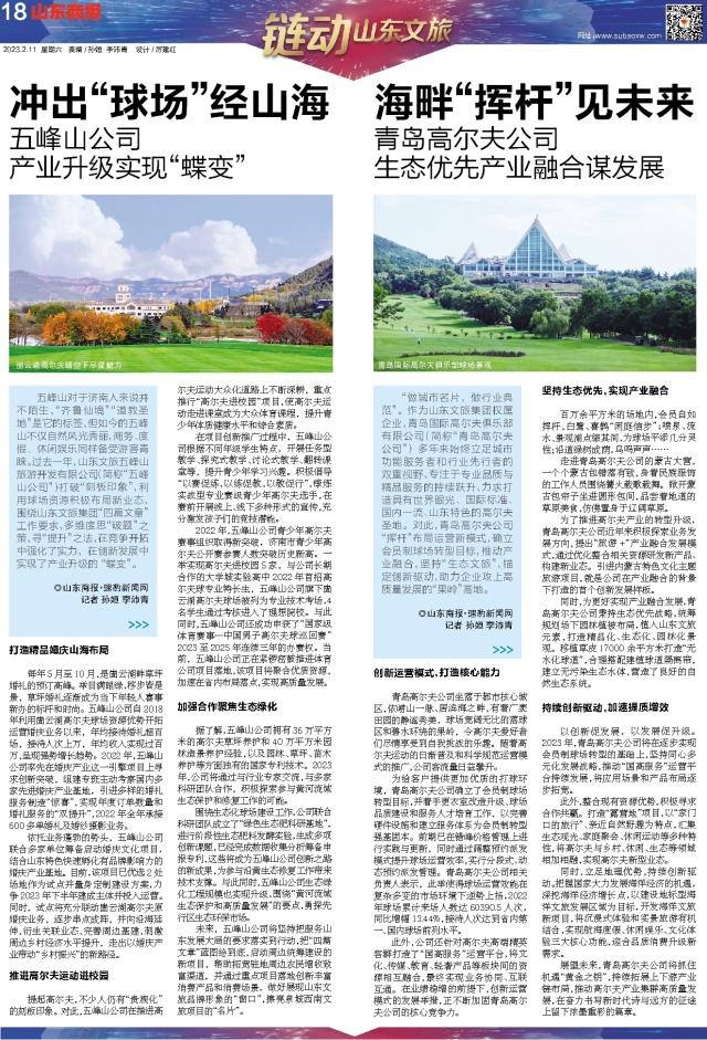 五峰山對于濟南人來說并不陌生,“齊魯仙境”“道教圣地”是它的標(biāo)簽,但如今的五峰山不僅自然風(fēng)光秀麗,商務(wù)、度假、休閑娛樂同樣備受游客青睞。過去一年,山東文旅五峰山旅游開發(fā)有限公司(簡稱“五峰山公司”)打破“刻板印象”,利用球場資源積極布局新業(yè)態(tài),圍繞山東文旅集團“四篇文章”工作要求,多維度思“破題”之策,尋“提升”之法,在競爭開拓中強化了實力,在創(chuàng)新發(fā)展中實現(xiàn)了產(chǎn)業(yè)升級的“蝶變”。