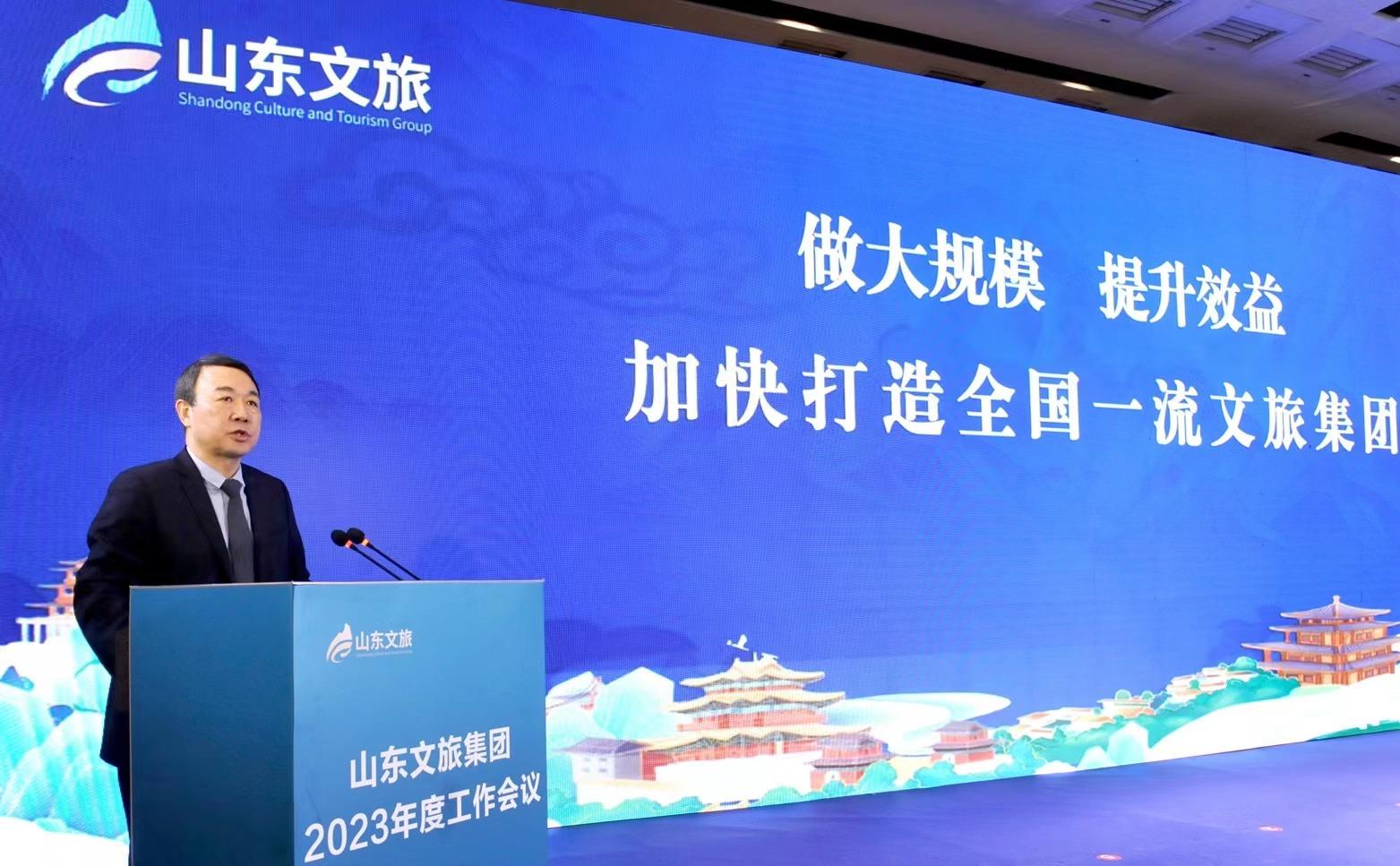 山東文旅集團2023年度工作會議召開,山東文旅集團黨委書記、董事長高洪雷在會上講話。記者王曉峰