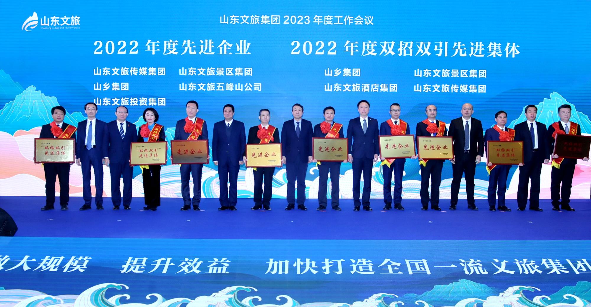 山東文旅集團2022年度先進企業、雙招雙引先進集體接受表彰。