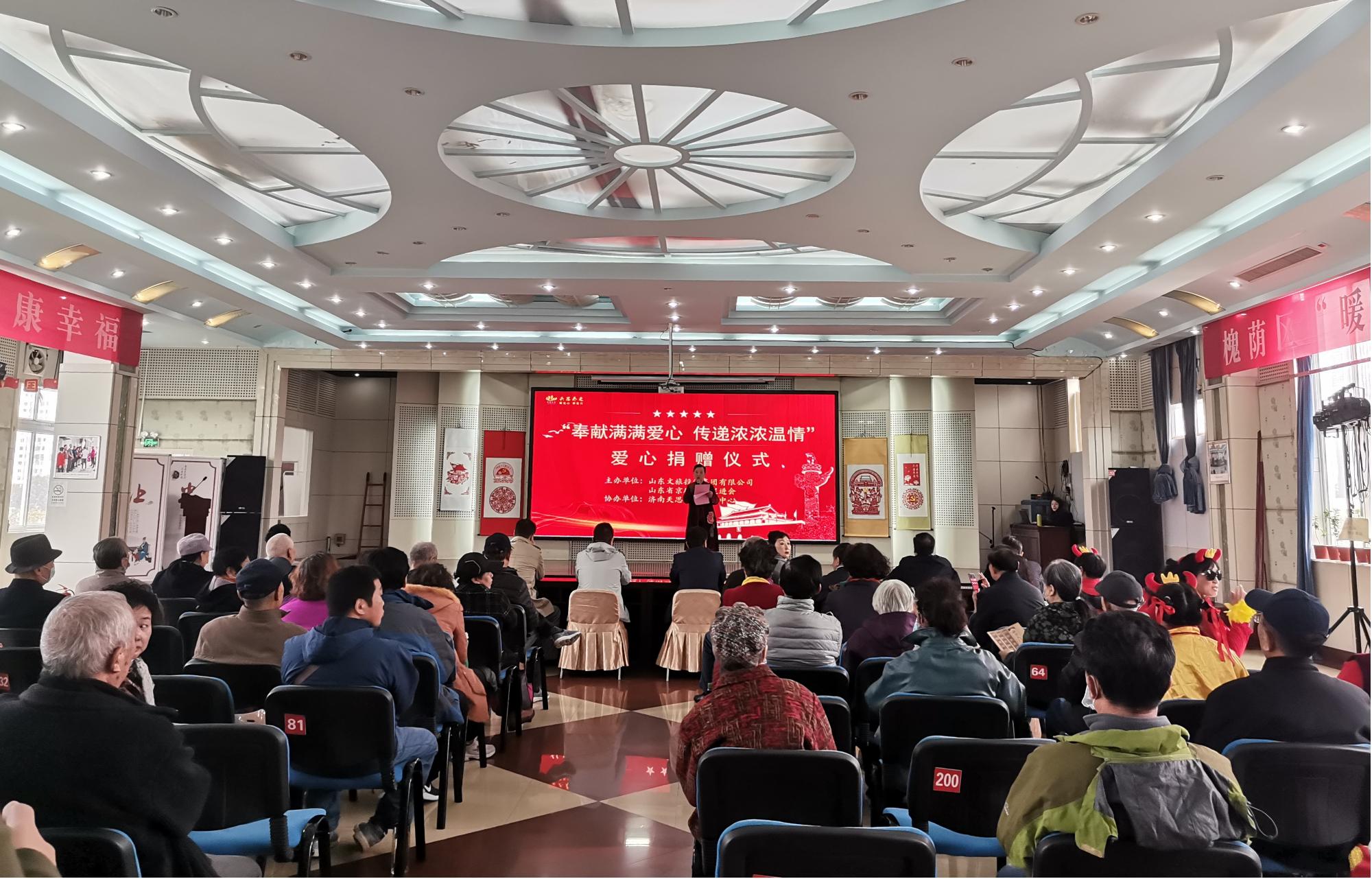 為傳承和弘揚愛老、尊老、敬老、助老的優良傳統,引導廣大黨員增強黨性意識、責任意識、服務意識,10月20日,山東文旅投資集團和山東省京劇發展促進會走進槐蔭區振興街街道濟南天思養老服務中心,共同舉辦“奉獻滿滿愛心 傳遞濃濃溫情”愛心捐贈儀式。山東文旅投資集團有關領導及黨員志愿者參加活動。